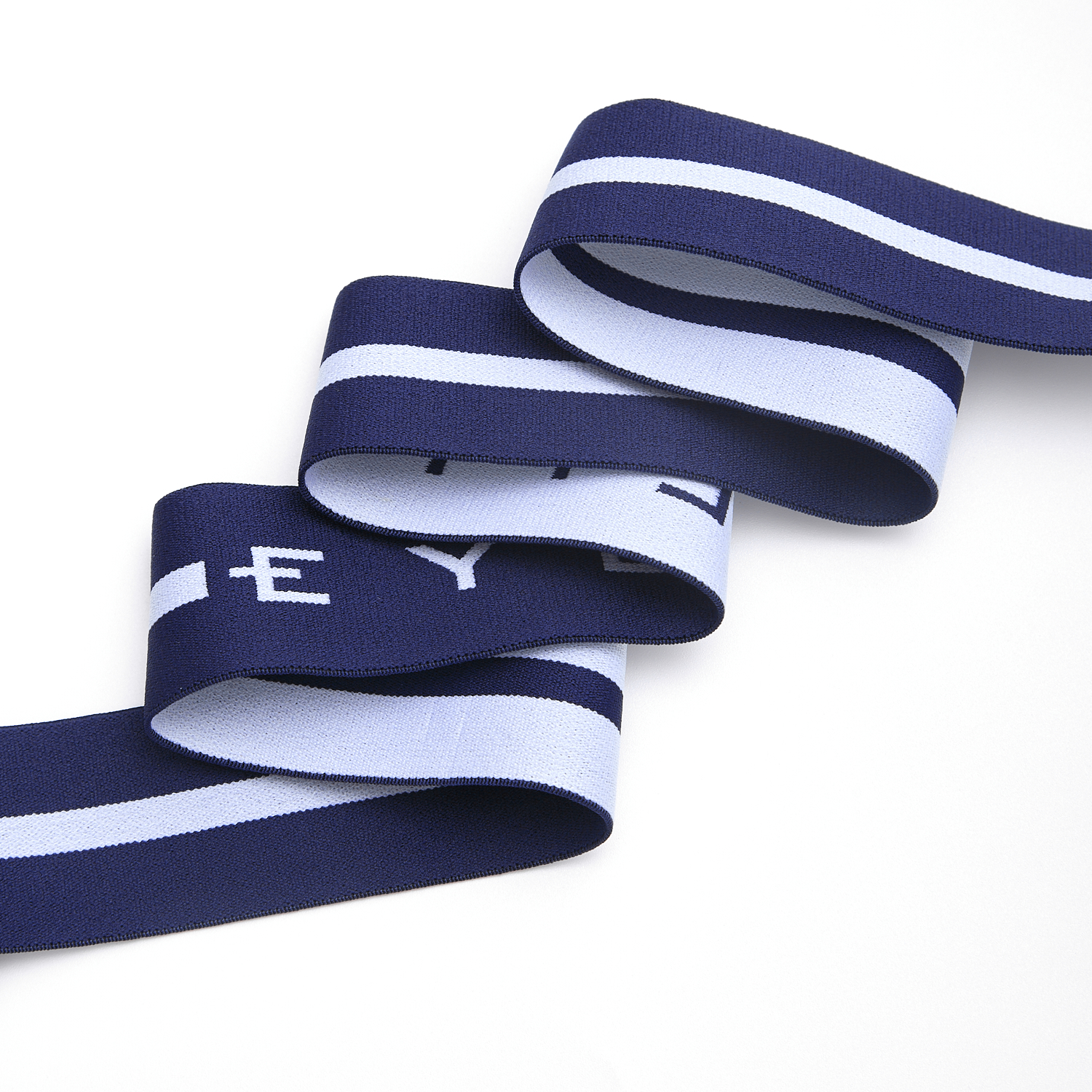 精密织造工艺:字母与条纹通过提花工艺呈现,图案清晰立体,边缘工整无脱线,织带表面平滑细腻,耐用性与美观性兼备。